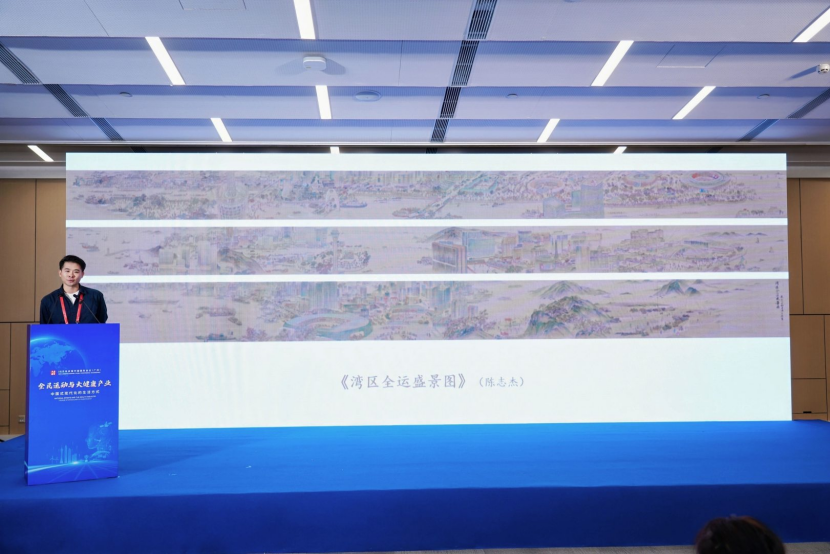 佛山画家陈志杰发布《湾区全运盛景图》长卷,采取中国传统绘画的散点透视跟分区叙事的技法,以珠江水汇入伶仃洋作为主线,串联广州、澳门、香港三大赛区,展现赛事的精彩瞬间于粤港澳大湾区自然风光。