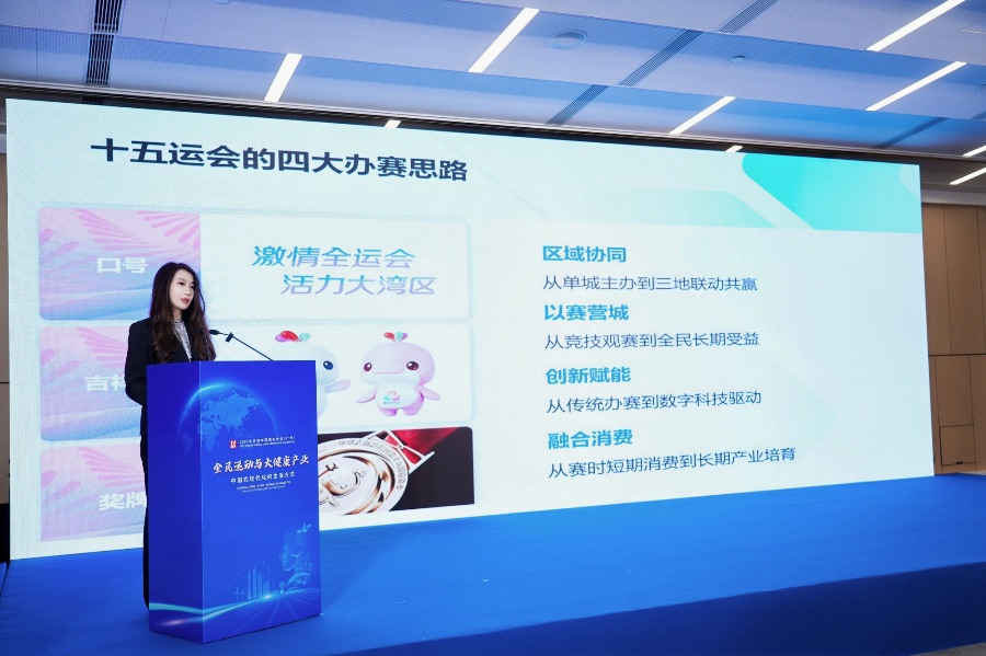 南方财经全媒体集团粤港澳政经新闻工作室主任张雅婷发布《第十五届全运会的价值转向与经济带动效应报告》,探讨十五运会呈现出区域协同、以赛营城、创新赋能、融合消费的四大办赛思路,创新粤港澳联合办赛、“体育+”跨界赋能,“城市+”协同发展的办赛路径,呈现区域增值、产业联动、城市发展等效应。