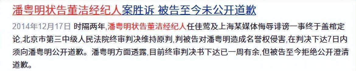 这才使得潘粤明摆脱了如山般的骂名,还转身把董洁的助理告到了法院。