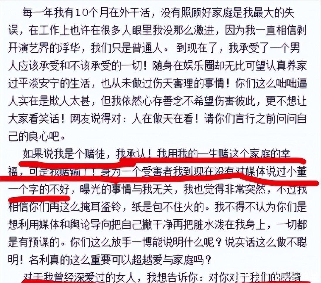 董洁作为妻子,她那工作室偏在此时添乱,在社交媒体上发了篇声讨离婚的文章。