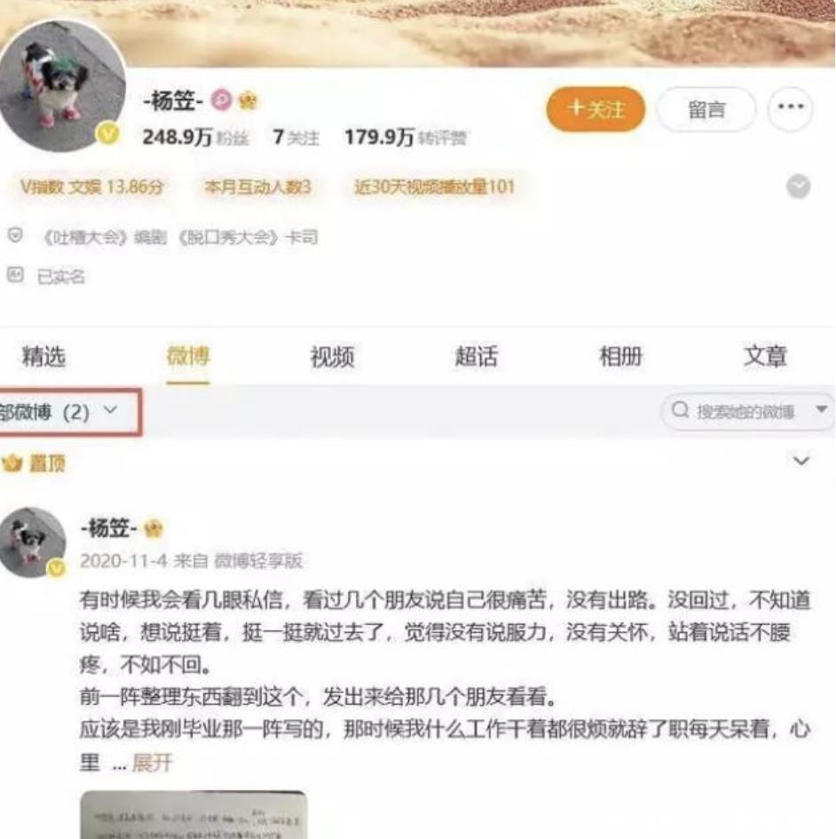 她清空了抖音,锁上了微博,只留下一条2020年的动态:"难过的时候就硬挺着,等一等,都会过去的"。