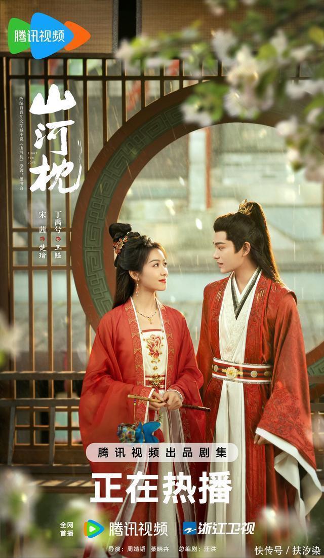 五、腾讯视频《山河枕》 宋茜、丁禹兮领衔主演古装权谋爱情剧。 改编自墨书白同名小说。 谁还没被《山河枕》的剧情虐得肝疼?剧中叔嫂虐恋,“白帝谷惨案”用千人群演实景拍摄壮观,“卫家七子战死仅一人归,雪中扶灵”的桥段超虐心,追剧的日子天天手攥紧纸巾,转头又为服化道和演技疯狂点赞, 该剧在腾讯站内热度最高达26000,灯塔累计播放量3.97亿,浙江卫视首日收视刷新年度纪录,数据实打实的亮眼!