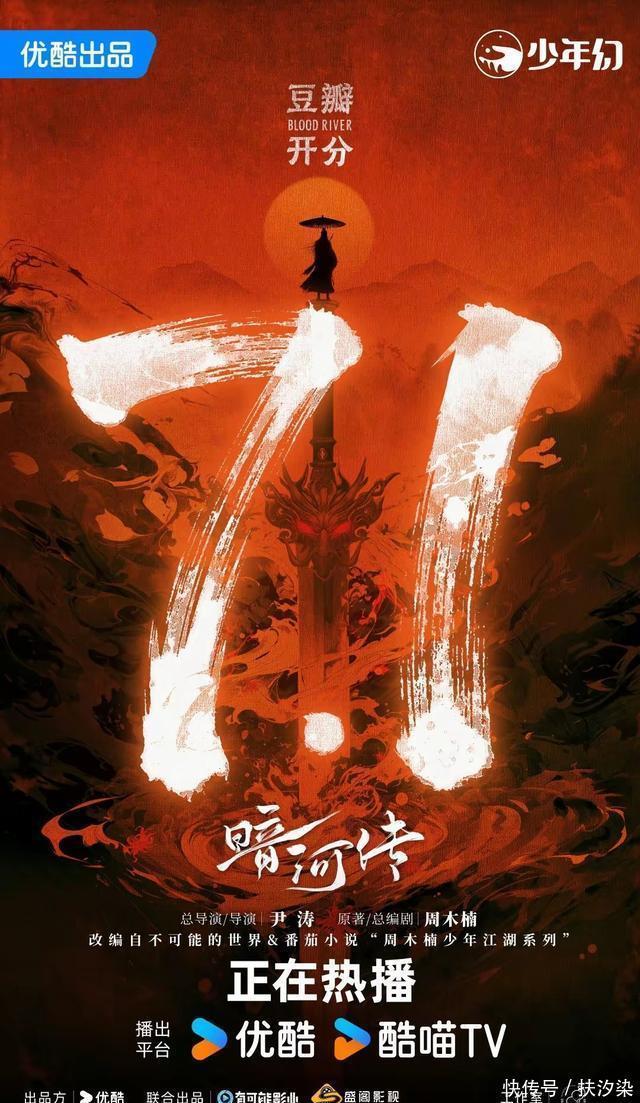三、优酷视频《暗河传》 龚俊、彭小苒、乔振宇、常华森领衔主演的古装武侠剧。 该剧改编自周木楠的同名小说。 《暗河传》完全可以无脑冲,剧情节奏紧凑,特效又酷又精致!还带着《少年歌行》的熟悉质感,看完满脑子都是暗河的刀光剑影与江湖深情。 在优酷站内热度峰值达10018,创下平台年度武侠剧热度纪录,累计播放量8.46亿,龚俊饰演的苏暮雨角色单日指数9.09,豆瓣评分从7.1分飙升至7.3分,弹幕里全是“武侠魂燃起来了”的感叹。