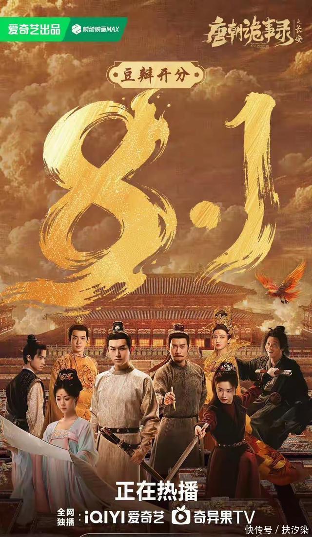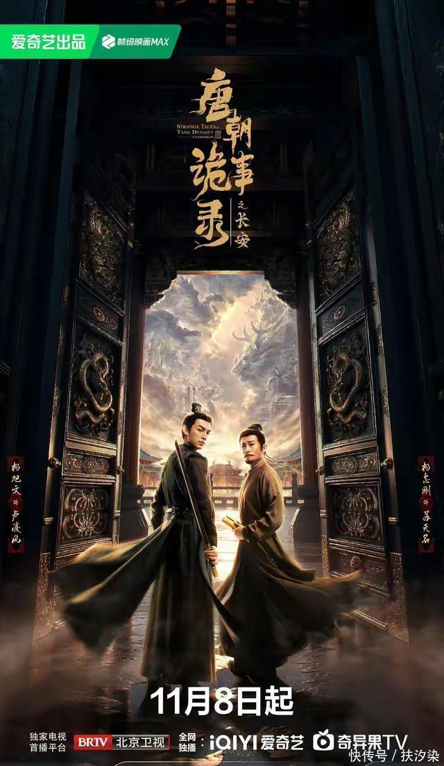 二、爱奇艺《唐朝诡事录之长安》 杨旭文、杨志刚领衔主演的40集志怪单元探案剧。 该剧改编自作家魏风华同名原著。 要说11月最让人惊喜的剧,《唐朝诡事录之长安》稳居榜首,带着满满诚意而来,4500万实景长安砸出的续集“天花板”,这波续集太顶了! 豆瓣开分8.1分,开播第4天,在爱奇艺热度破万,灯塔集均播放4142万,累计播放量10.13亿。微博主话题阅读量超50亿,这数据不愧是霸榜神剧。
