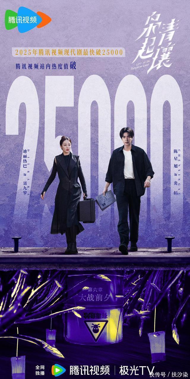 九、腾讯视频《枭起青壤》 迪丽热巴、陈星旭领衔主演的32集都市奇幻悬疑剧。 根据尾鱼同名小说改编。 顶流迪丽热巴+奇幻悬疑大佬“尾鱼的IP”这组合杀疯了,疯刀女王VS复仇狼狗双A联动,迪丽热巴冷艳果敢,热巴黑衣高马尾+战损妆又美又飒,陈星旭饰演隐忍决绝的复仇贵公子炎拓。 该剧在腾讯站内热度峰值6分钟突破20800,开播1小时内热度突破24000+,最终峰值达到25288,创下腾讯视频现代剧首播热度增速新纪录。