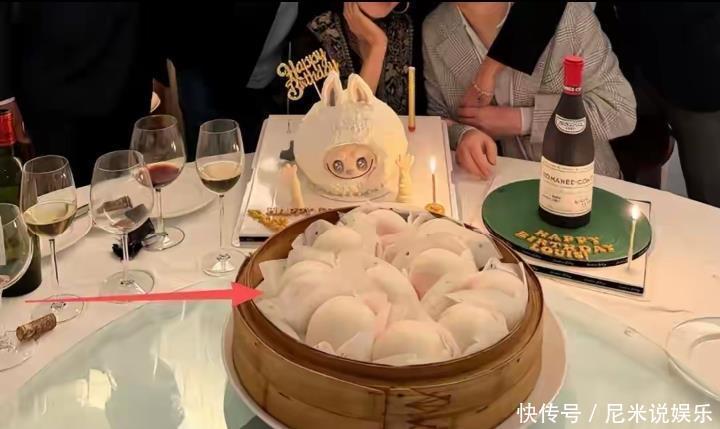这场寿宴的“接地气配置”,让人眼前一亮!竹蒸笼里整整齐齐摆着10个馒头,雪白松软、个头饱满,仿佛能闻到热气,旁边是可爱的兔子蛋糕和贵到离谱的罗曼尼·康帝红酒,没有满桌硬菜,只有几只散落的高脚杯,朴实与精致碰撞出奇妙火花。