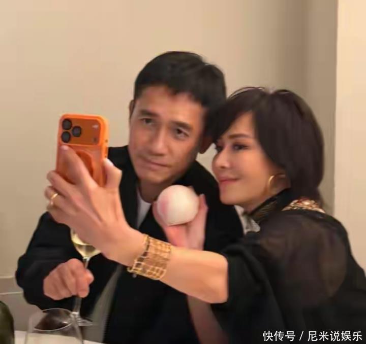 最让人磕到的,是梁朝伟的“宠妻名场面”!平时公开场合他高冷到极致,记者想拍张正面照比登天还难,可这次全程黏在刘嘉玲身边:穿简约灰色西装,要么从身后轻拥老婆,眼神宠溺到能掐出水;要么举着手机自拍,把刘嘉玲和馒头一起定格,自己笑得眼睛眯成缝。