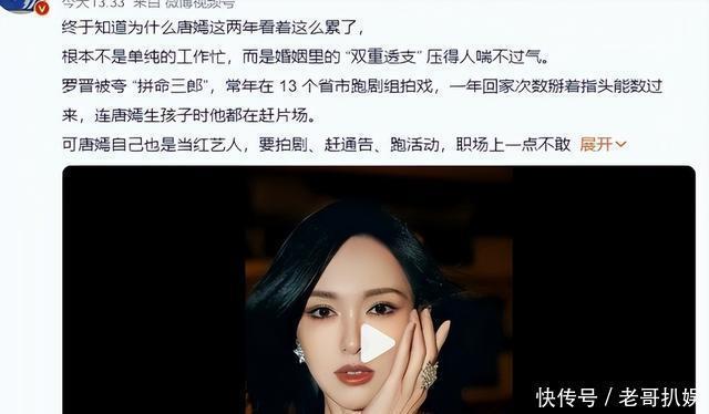 娱乐圈见多了这种情况,很多明星夫妻都是婚后没多久就出现问题。 有的是因为性格不合,有的是因为家庭矛盾,有的是因为第三者插足。 唐嫣和罗晋是哪种情况,外人不得而知。