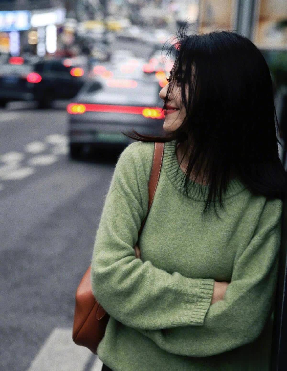 毛衣颜色是绿色的,穿在身上有显白的效果;与高领毛衣相比,此款的领口更不易上火,很适合当下的天气。